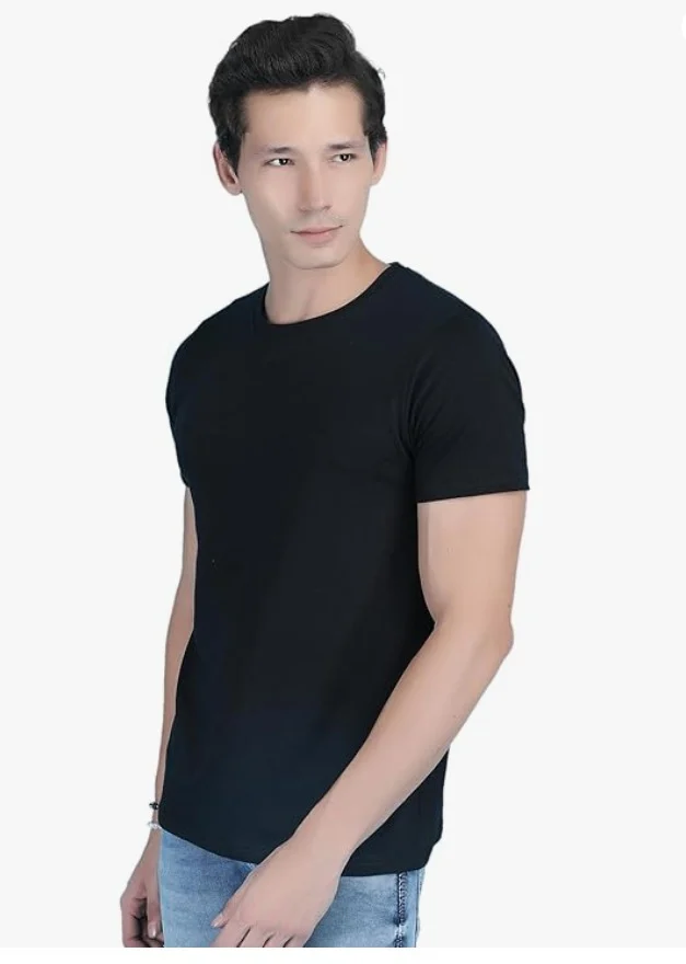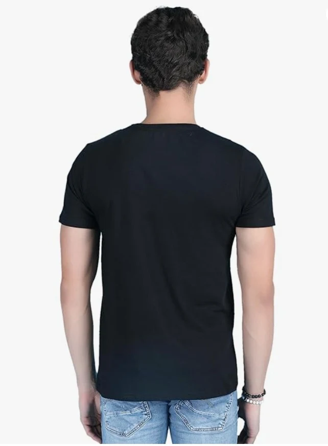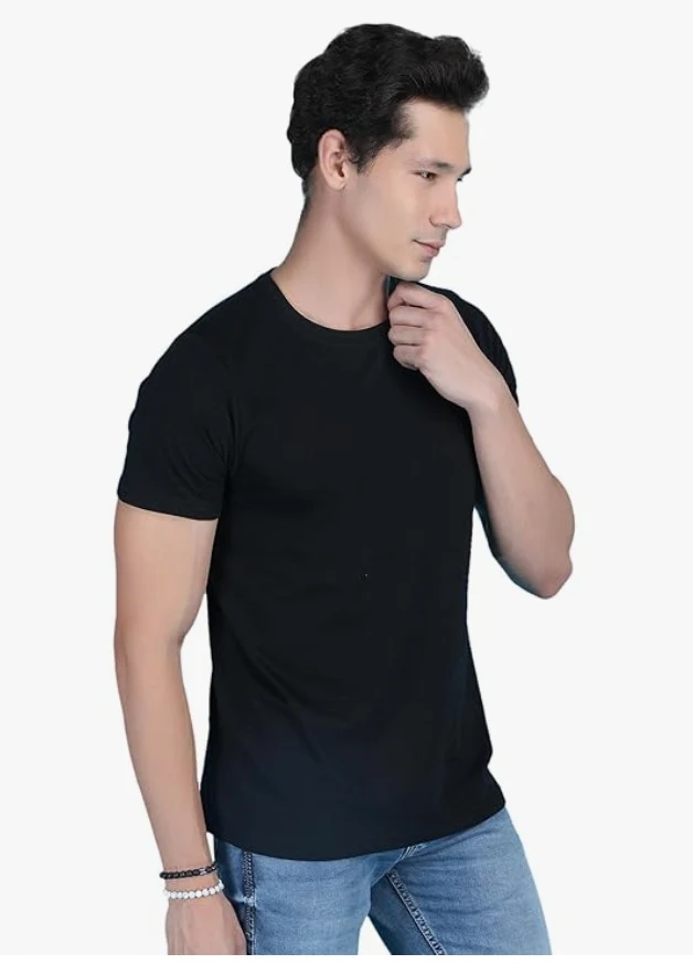 Crafted from 100% cotton, this solid black t-shirt promises all-day comfort with its soft, breathable feel