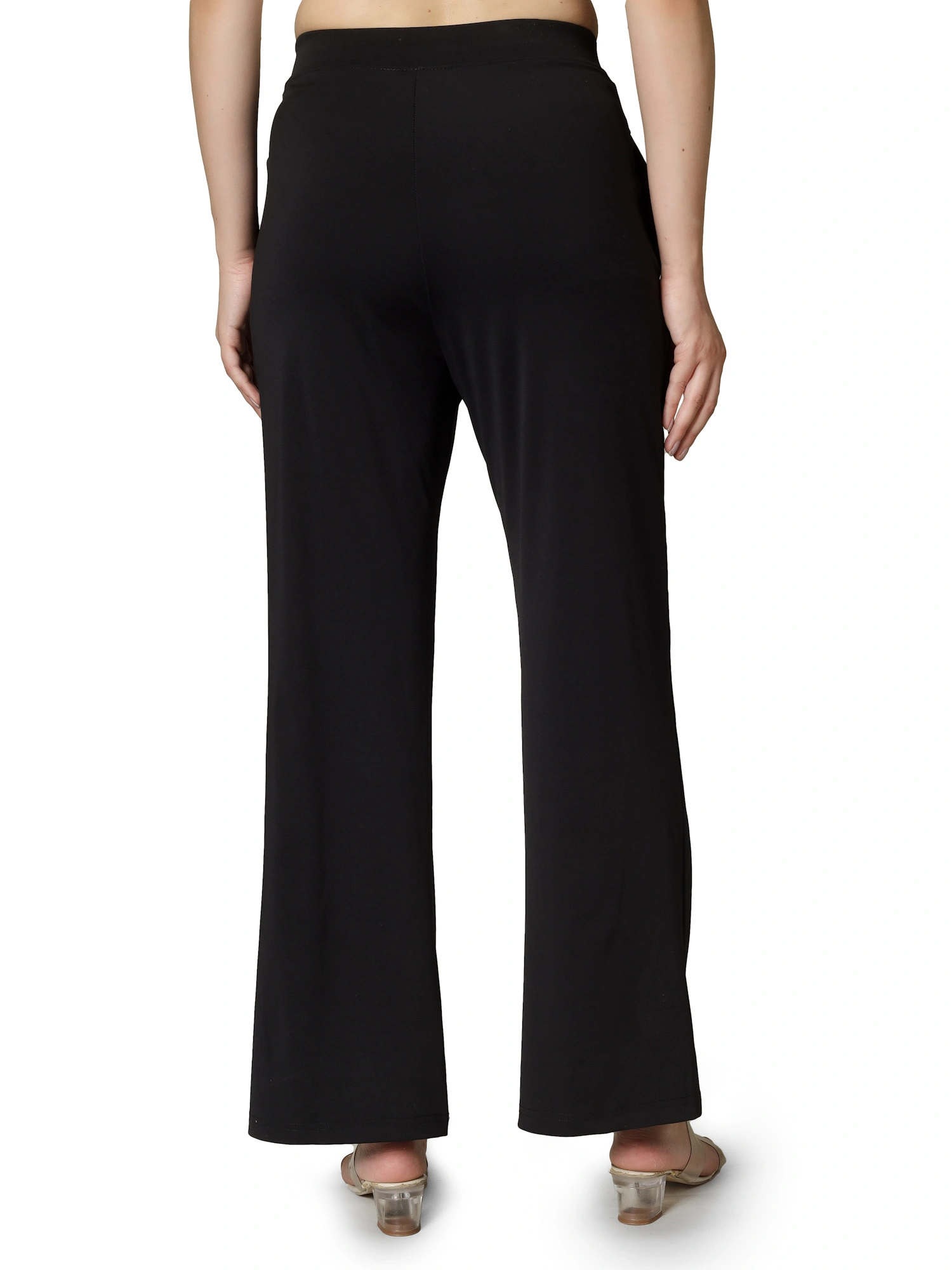 The pants feature a mid-rise waist, slip-on closure, and elasticized waistband with 2 side pockets.