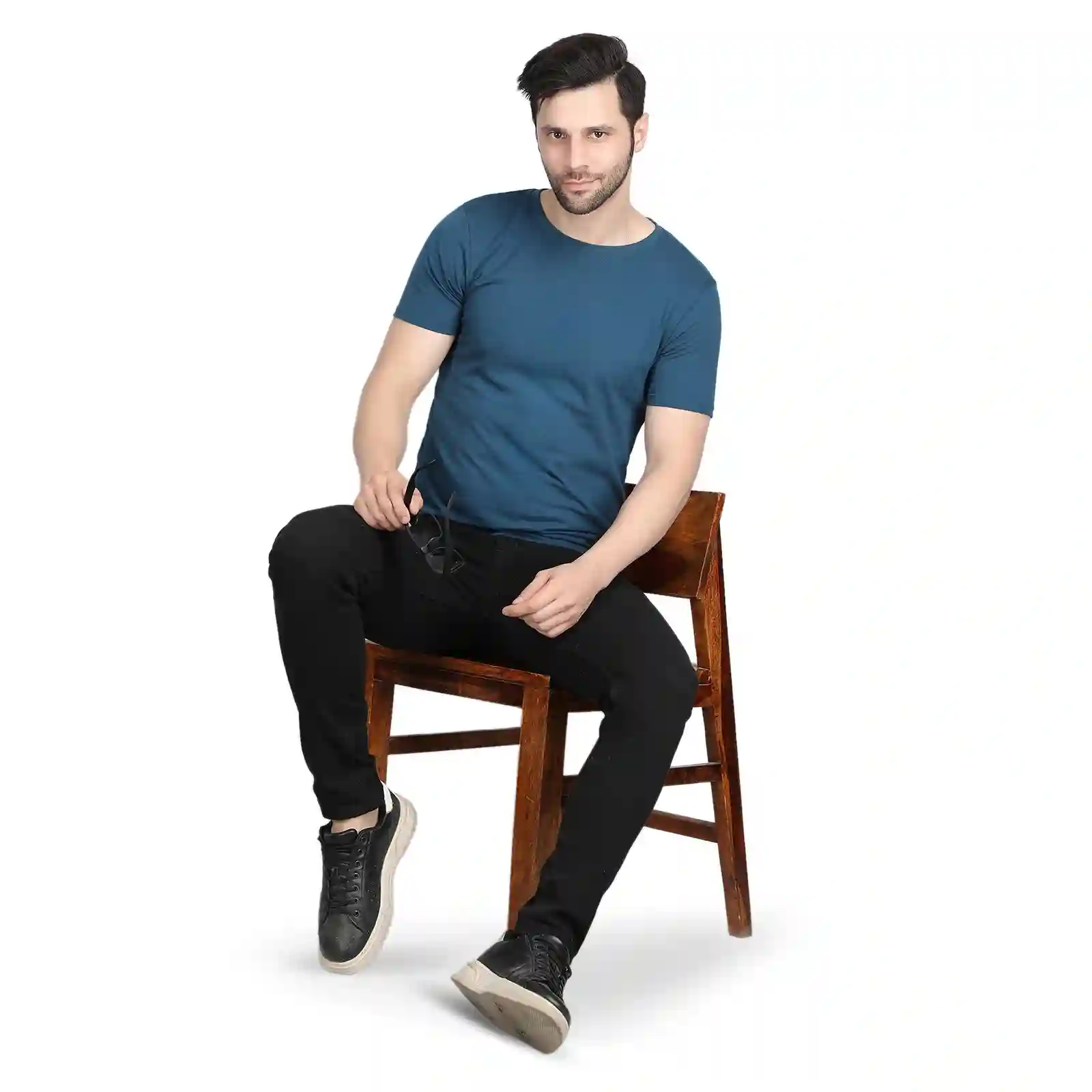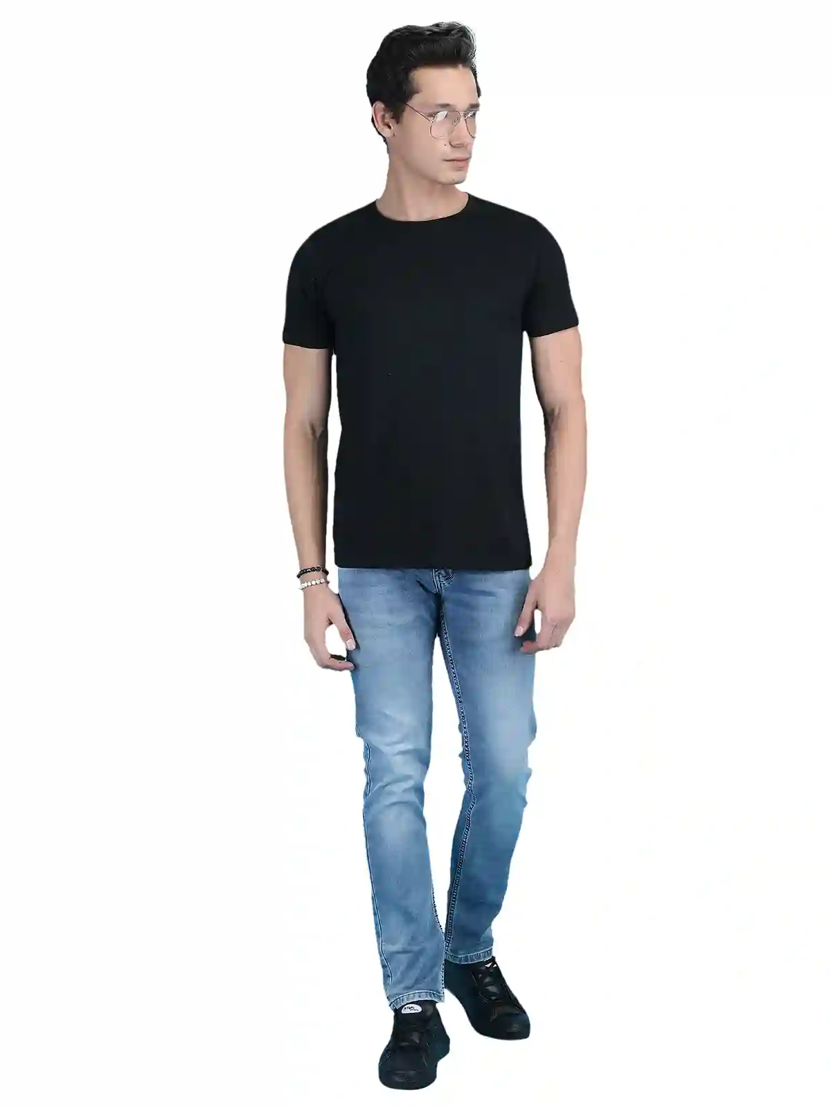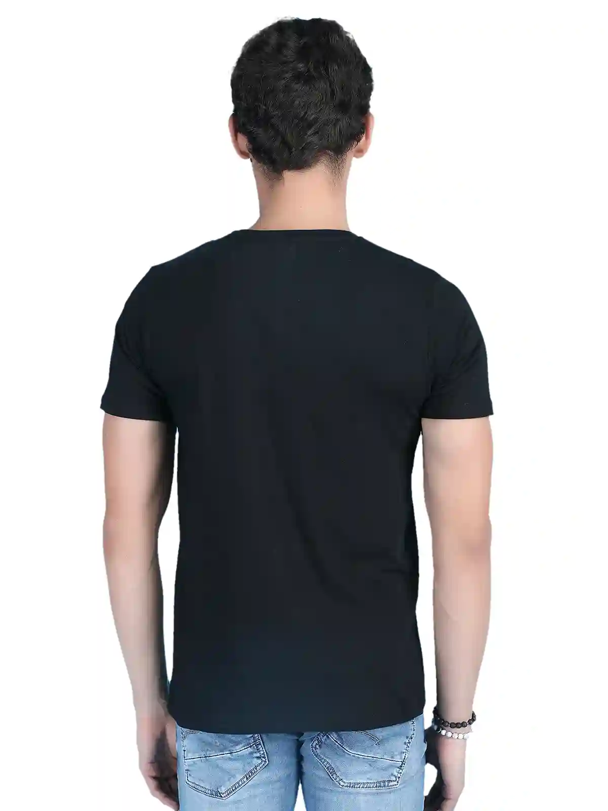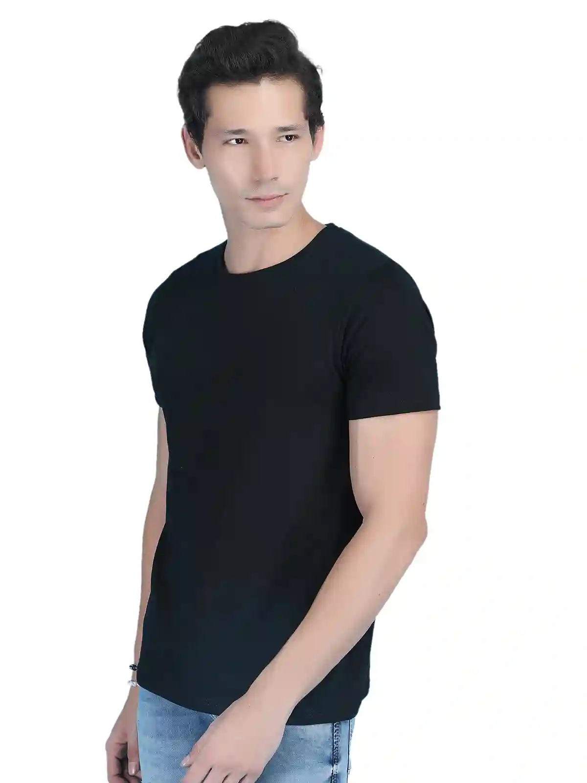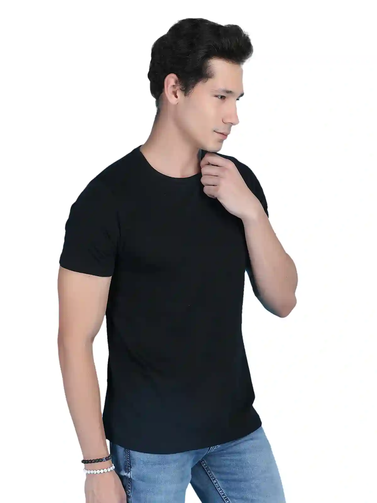Crafted from 100% cotton, this solid black t-shirt promises all-day comfort with its soft, breathable feel