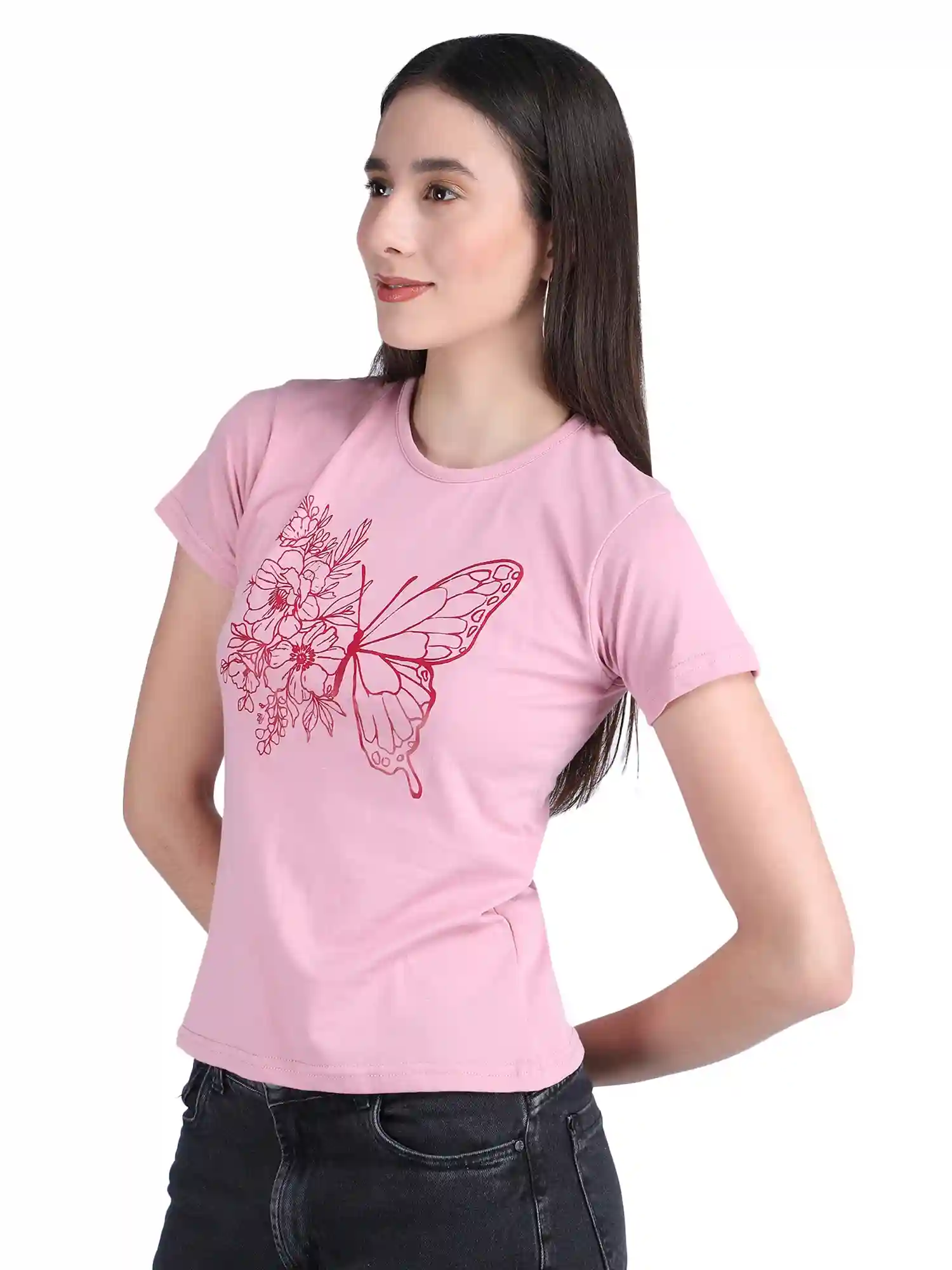 Women Flr Butterfly and Heart Printed T Shirt (Pack Of 2)